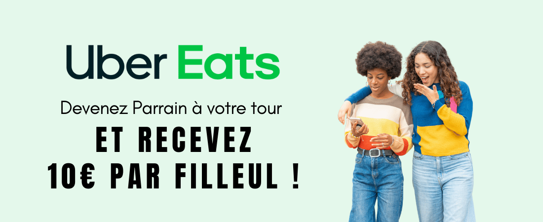 En entrant un code parrain Uber Eats eats-r88s4l lors de ton inscription, vous bénéficiez d’une remise immédiate de 10€ sur votre première commande.