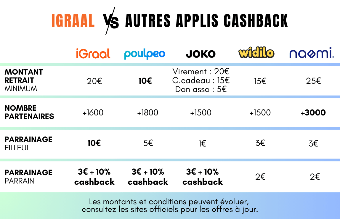 👉 Verdict : iGraal reste le plus complet, mais Poulpeo séduit pour son bonus filleul plus généreux et Joko pour son automatisation.